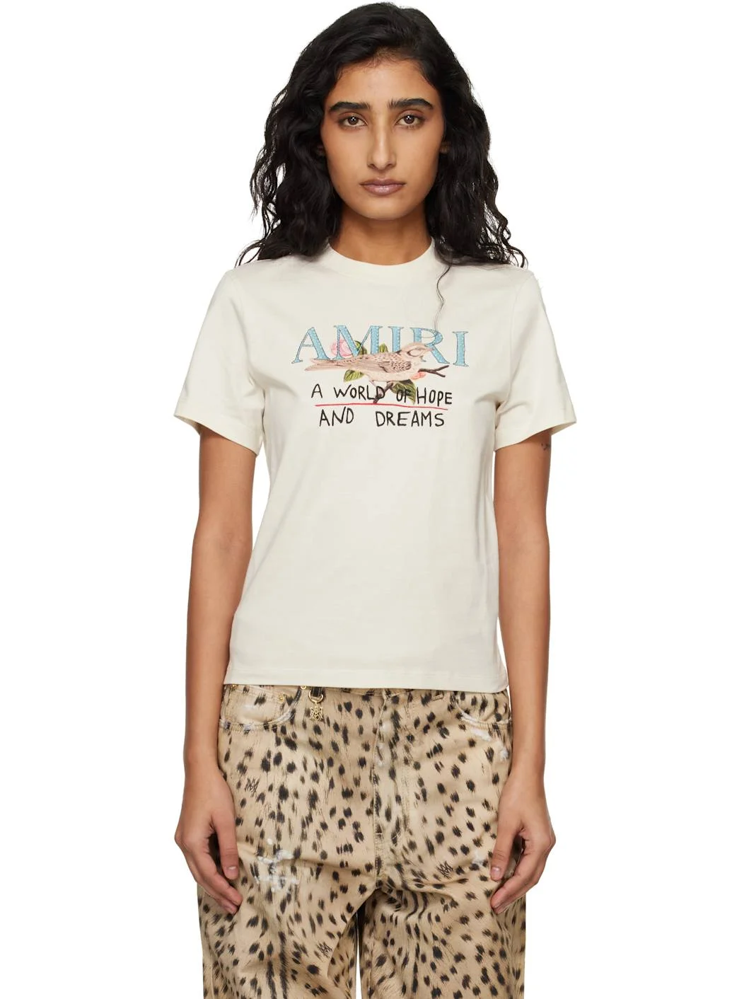 Cotton jersey T-shirt. · Rib-knit crewneck · Studded logo at chest · Graphics printed at front · Text embroidered at front Supplier color: Alabaster 100% cotton. Made in Portugal 261886F110027