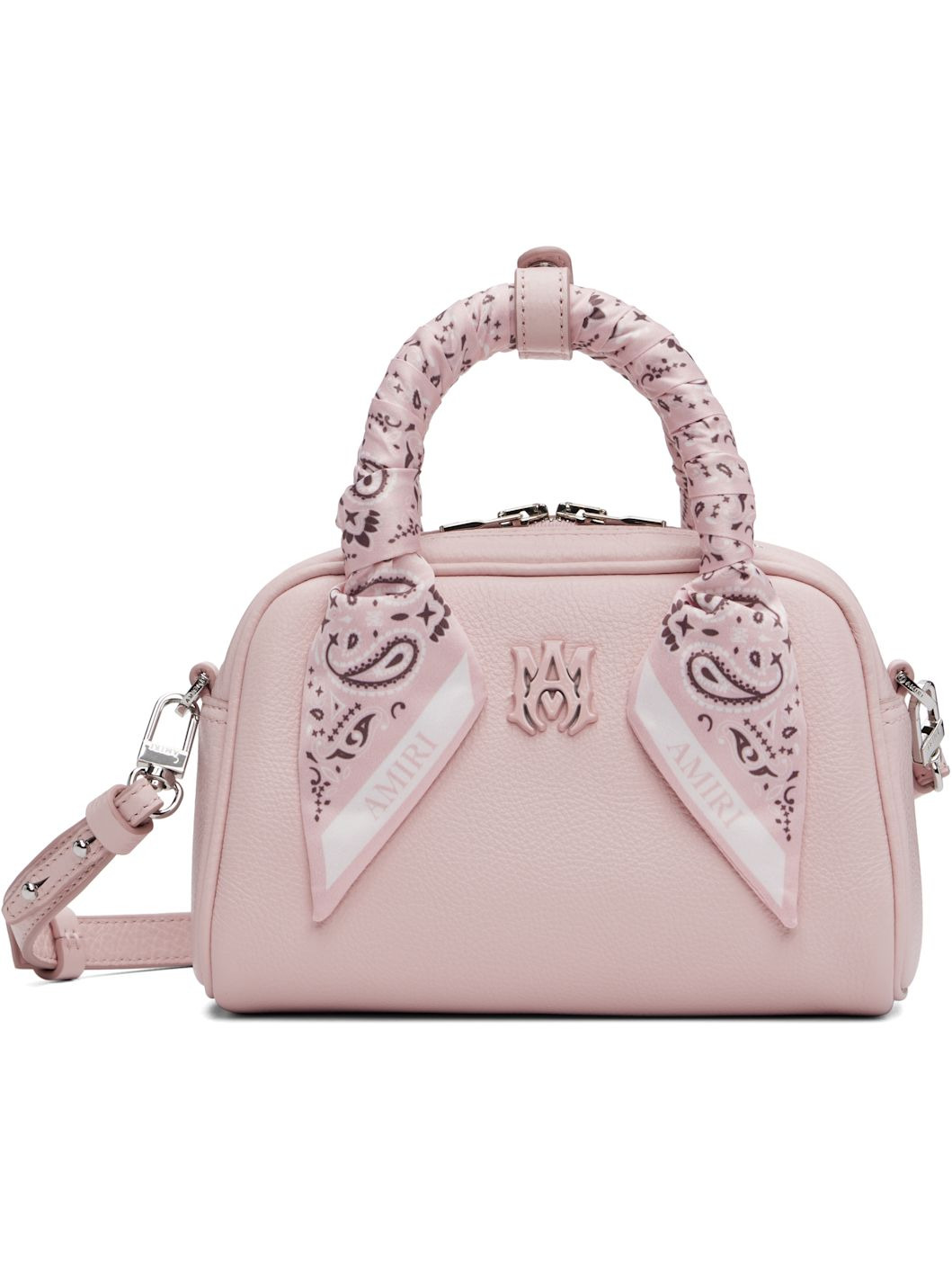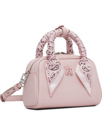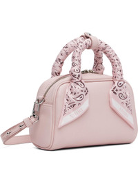 Pebble-grained leather top handle bag. · Press-stud tab at bandana-wrapped twin carry handles · Adjustable and detachable crossbody strap · Logo hardware at face · Two-way zip closure · Card slot at interior · Logo-woven lining · Logo-engraved silver-tone hardware · H4.5" x W7.25" x D3" Supplier color: Pink Leather. Made in Viet Nam 252886F046006