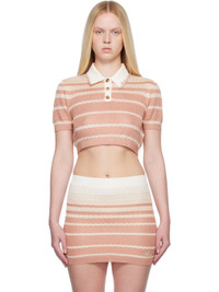 Semi-sheer open-knit viscose polo. Stripes throughout. · Logo embroidered at rib-knit spread collar · Three-button placket · Rib-knit cropped hem and cuffs Supplier color: Dusk pink 100% viscose. Made in Italy 252886F108000