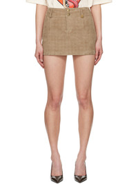 Goatskin suede miniskirt. Embossed logo pattern throughout. · Belt loops · Logo hardware at belt loop · Zip-fly · Logo-engraved gold-tone hardware · Unlined Supplier color: Camel 100% goatskin. Made in Turkey 251886F090004