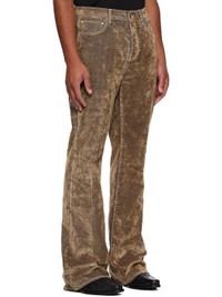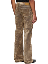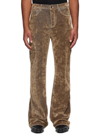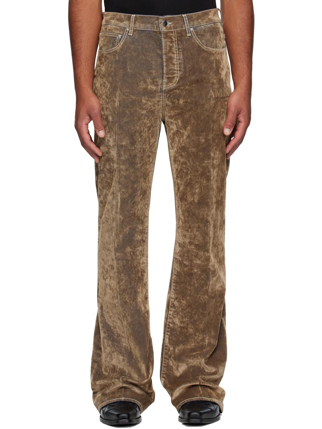 Stretch velvet jeans. · Flared-leg · Belt loops · Five-pocket styling · Button fly · Logo patch at back waistband · Contrast stitching in white Supplier color: Tan Body: 67% cotton, 21% polyester, 6% polyurethane, 4% polyamide, 2% elastomultiester. Pocket lining: 65% polyester, 35% cotton. Made in Italy 252886M186046