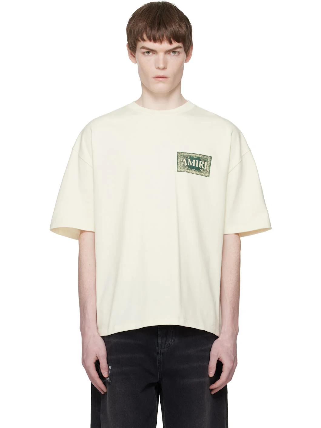 Cotton jersey T-shirt. · Rib-knit crewneck · Logo graphic printed at chest and back · Dropped shoulders Supplier color: Ivory 100% cotton. Made in Italy 261886M213072