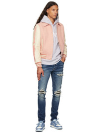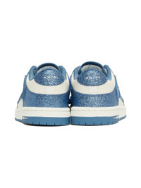 Low-top glittered and grained leather sneakers in white and blue. · Perforated detailing at toe · Logo hardware at lace-up closure · Logo patch at padded tongue · Padded collar · Graphic appliques at sides · Logo embossed at heel tab · Mesh lining · Treaded rubber sole Supplier color: White/Blue Upper: leather. Sole: rubber. Made in Viet Nam 242886M237027