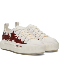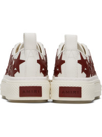 Low-top buffed leather sneakers in white and burgundy. · Rubber cap toe · Lace-up closure · Logo flag at padded tongue · Signature graphic appliques at sides · Pull-loop at heel collar · Rubberized logo patch at heel · Buffed leather lining · Logo embossed at rubber midsole · Treaded rubber sole · Platform: H2" Supplier color: Deep red Upper: leather. Sole: rubber. Made in Viet Nam 251886F128010