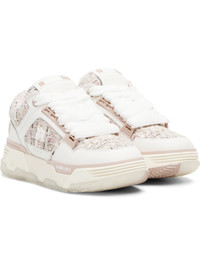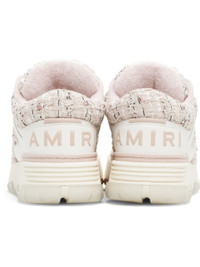 Low-top paneled grained leather and boucle tweed sneakers. · Lace-up closure · Logo patch and hardware at tongue · Padded tongue and collar · Logo hardware at outer side · Perforations at sides · Logo embossed at heel counter · Terrycloth lining · Logo embossed at textured rubber midsole · Treaded rubber sole Supplier color: Evening sand Upper: leather, textile. Sole: rubber. Made in Viet Nam 252886F128017