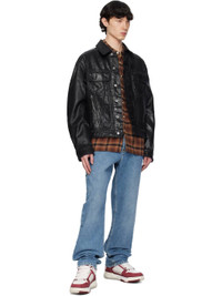 Low-top buffed leather, denim, and mesh sneakers in white and red. · Jacquard logo pattern and raw edges throughout · Graphic perforations at toe · Lace-up closure · Logo patch at padded tongue · Padded collar · Logo bonded at outer side · Logo embroidered at heel counter · Terrycloth lining · Logo embossed at rubber midsole · Treaded rubber platform sole · Platform: H1.75" Supplier color: Deep red Upper: leather, textile. Sole: rubber. Made in Viet Nam 251886M237039