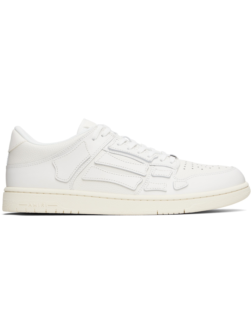 Low-top buffed and grained leather sneakers. · Perforated detailing at toe · Lace-up closure · Logo patch at padded tongue · Padded collar · Graphic appliques at sides · Logo printed at heel tab · Mesh lining · Logo embossed at textured rubber midsole · Treaded rubber sole Part of the Core collection. Supplier color: White/White/Vintage Upper: leather. Sole: rubber. Made in Viet Nam 252886M237050