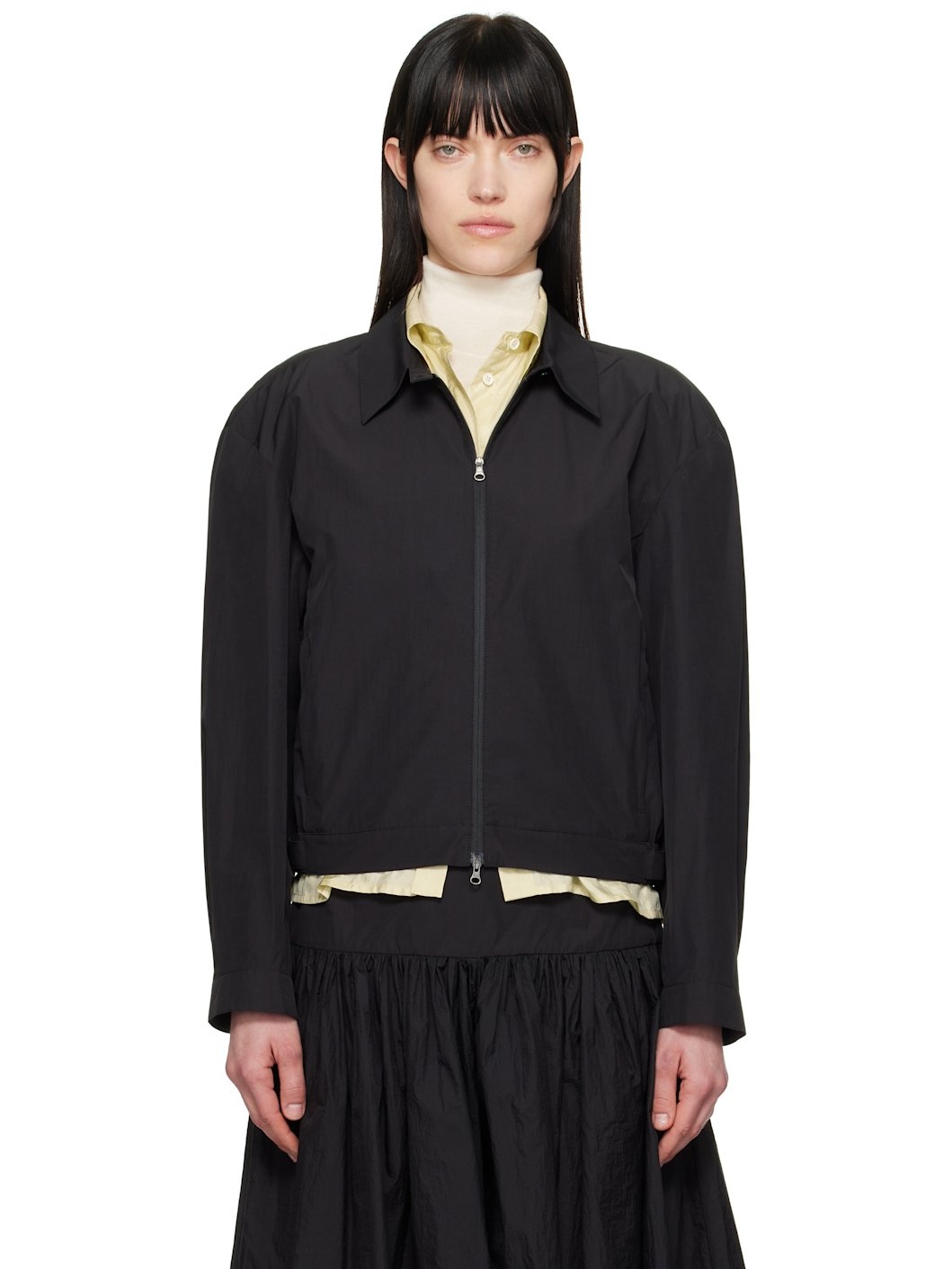 Lightweight crinkled polyester- and cotton-blend taffeta jacket. · Button tab at spread collar · Two-way zip closure · Darts at front · Seam pockets · Partially elasticized cropped hem · Adjustable button tab at cuffs · Adjustable button tabs at back hem Supplier color: Black Body: 44% polyester, 43% cotton, 13% nylon. Lining: 100% polyester. Made in South Korea 251436F063008