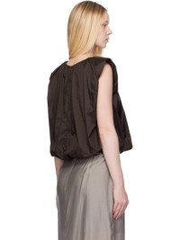 Lightweight nylon technical satin top. Gathering throughout. · Puff construction · Round neck · Cropped hem · Zip closure at back collar · Full stretch mesh lining Supplier color: Dark brown Body: 100% nylon. Lining: 80% nylon, 20% spandex. Made in South Korea 251436F111002