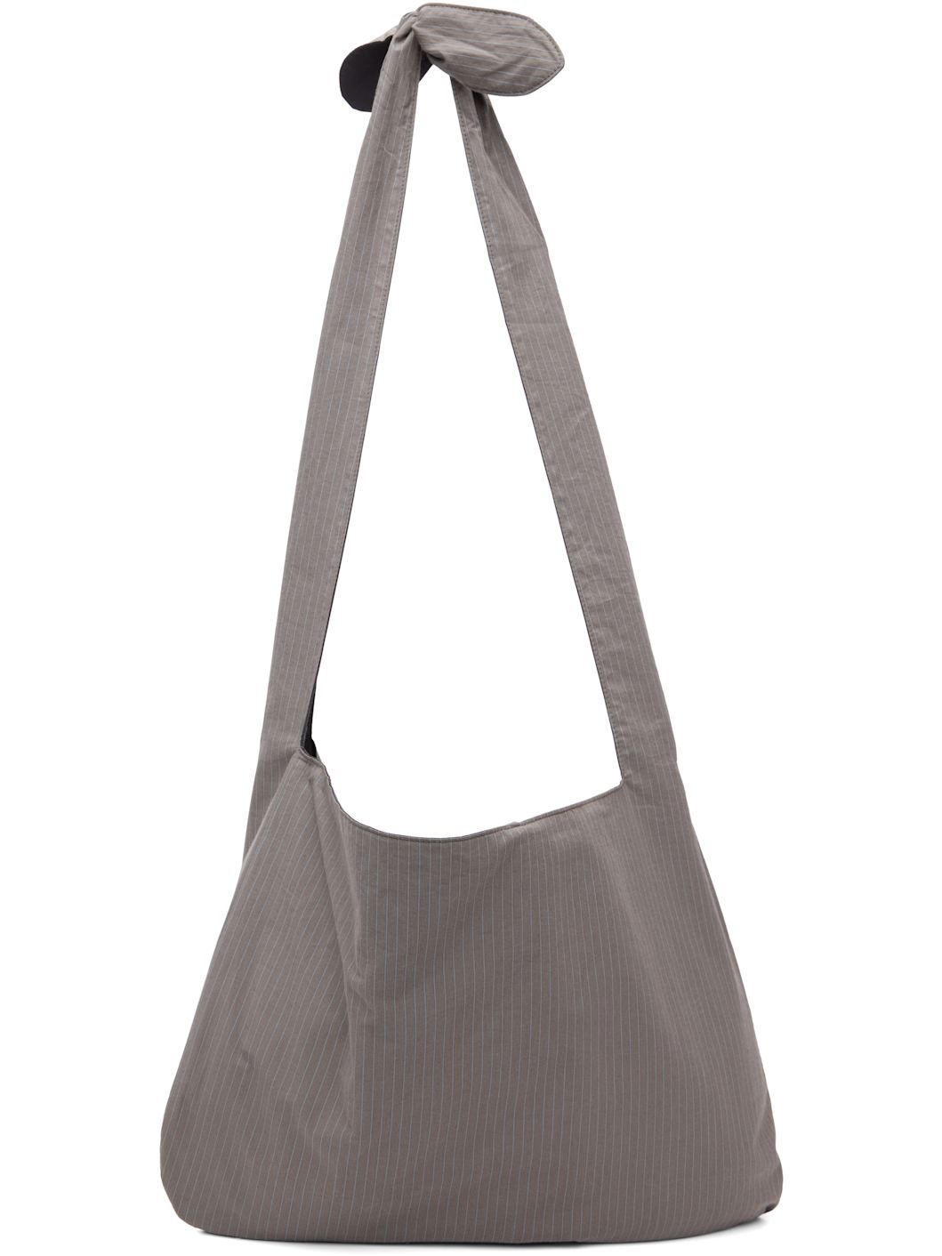 Cotton poplin shoulder bag. · Stripes throughout · Adjustable self-tie shoulder strap · Self-tie closure · Patch pocket at interior · H12" x W17" x D2" Supplier color: Grey Textile. Made in South Korea 251436F048006