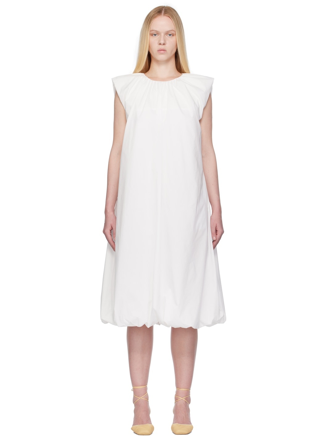 Cotton-blend poplin minidress. Gathering throughout. · Puff construction · Round neck · Zip closure with hook-eye at back collar · Fully lined Supplier color: White 68% cotton, 32% polyester. Made in South Korea 251436F054003