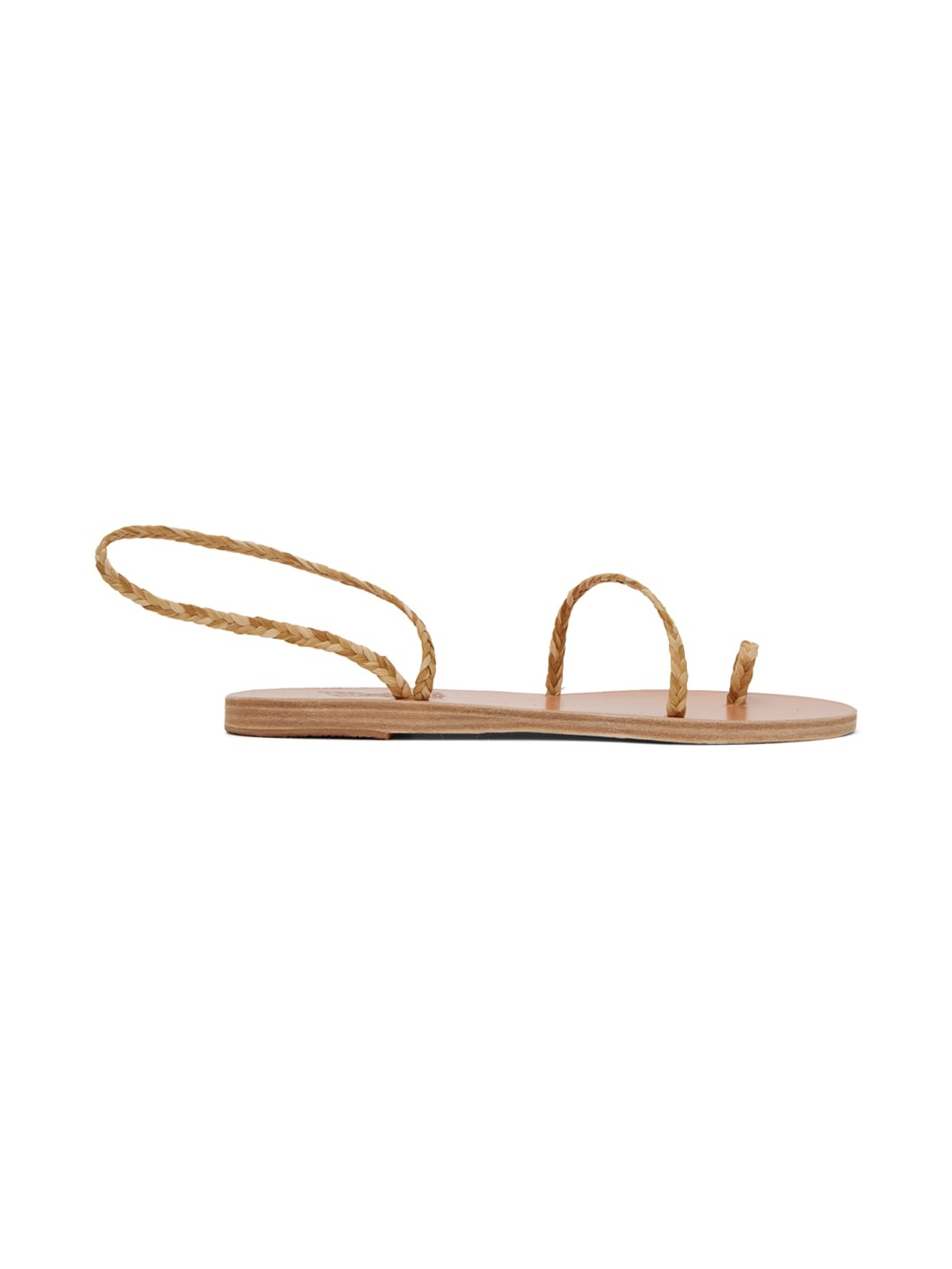 Handcrafted braided raffia sandals in beige. · Single toe strap · Fixed strap at vamp and ankle · Logo-embossed leather footbed · Leather sole with rubber injection Supplier color: Legno Upper: textile. Sole: leather, rubber. Made in Greece 231674F124096
