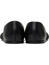 Handcrafted woven raffia and buffed leather ballerina flats in black. · Suede and buffed leather lining · Stacked leather heel · Treaded rubber sole Supplier color: Black Upper: textile, leather. Sole: rubber. Made in Greece 251674F118010