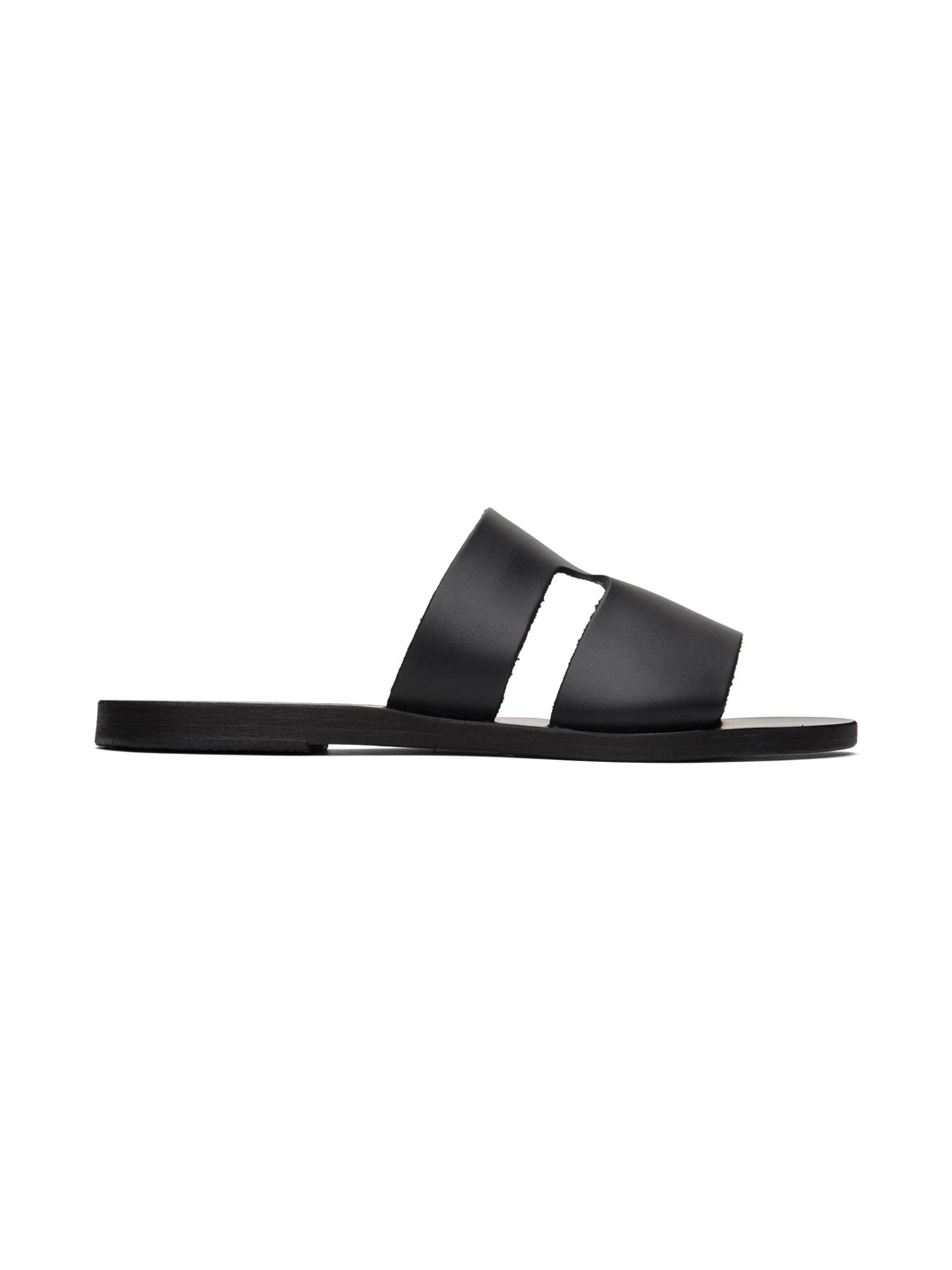 Handcrafted Vachetta leather flat sandals in black. · Open toe · Cutouts at vamp · Leather sole with rubber injection Supplier color: Black Upper: leather. Sole: leather, rubber. Made in Greece 241674F124061