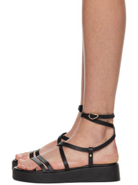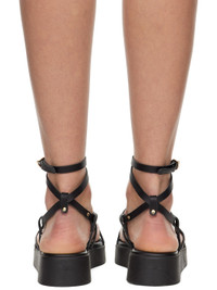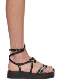 Handcrafted lightweight buffed leather flat sandals in black. · Open toe · Straps at vamp · Wraparound pin-buckle ankle strap · Logo embossed at molded leather footbed · Treaded rubber platform sole · Platform: H1.5" Supplier color: Black Leather. Made in Greece 251674F124046