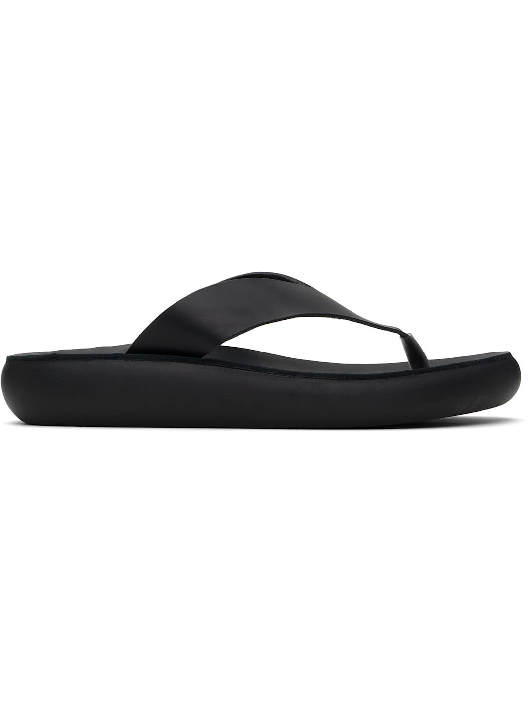 Handcrafted chemical-free buffed leather flip-flops in black. · Open toe · Thong-style strap at vamp · Logo embossed at molded footbed · Treaded rubber sole Supplier color: Black Upper: leather. Sole: rubber. Made in Greece 251674F124015