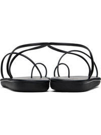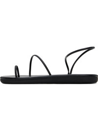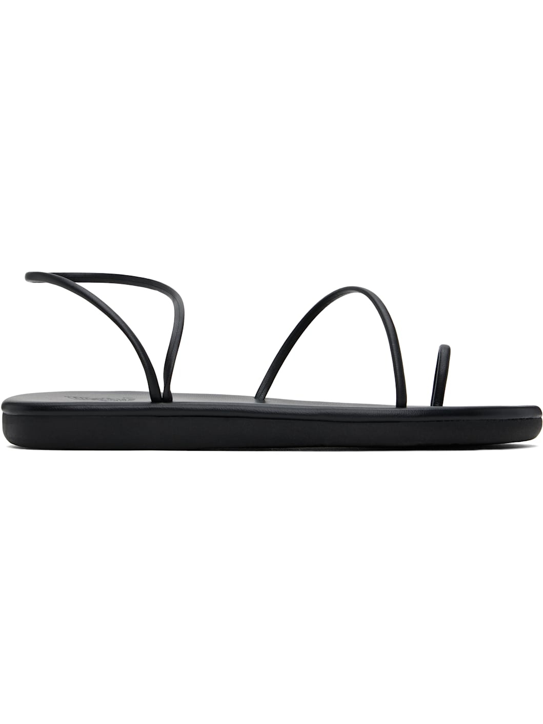 Handcrafted grained faux-leather flat sandals in black. · Open toe · Fixed toe strap · Fixed ankle strap · Logo embossed at padded leather footbed · Logo-embossed rubber sole Supplier color: Black Upper: synthetic, leather. Sole: rubber. Made in Greece 251674F124035