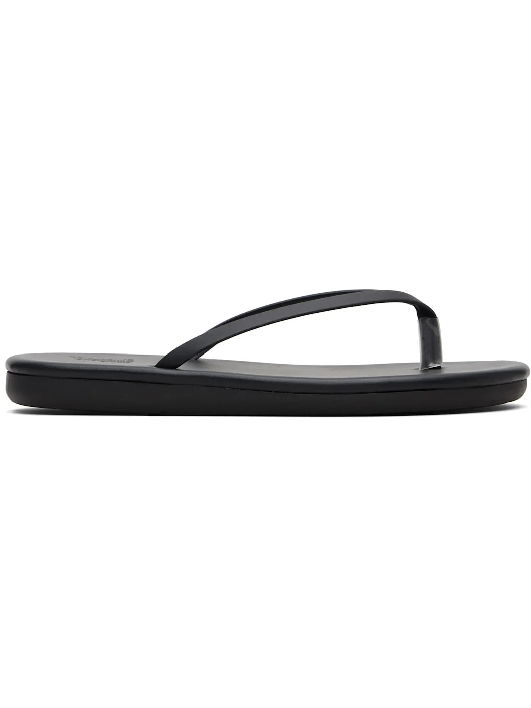 Handcrafted grained leather flip-flops. · Thong-style strap · Logo embossed at padded leather footbed · Treaded rubber sole Supplier color: Black Upper: leather. Sole: rubber. Made in Greece 261674F124005
