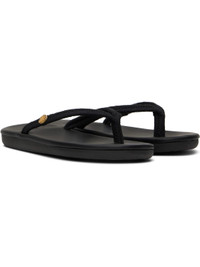 Handcrafted braided cord flip-flops in black. · Open toe · Logo hardware at thong-style strap · Logo embossed at padded leather footbed · Treaded rubber sole Supplier color: Black Upper: textile. Sole: rubber. Made in Greece 251674F124084