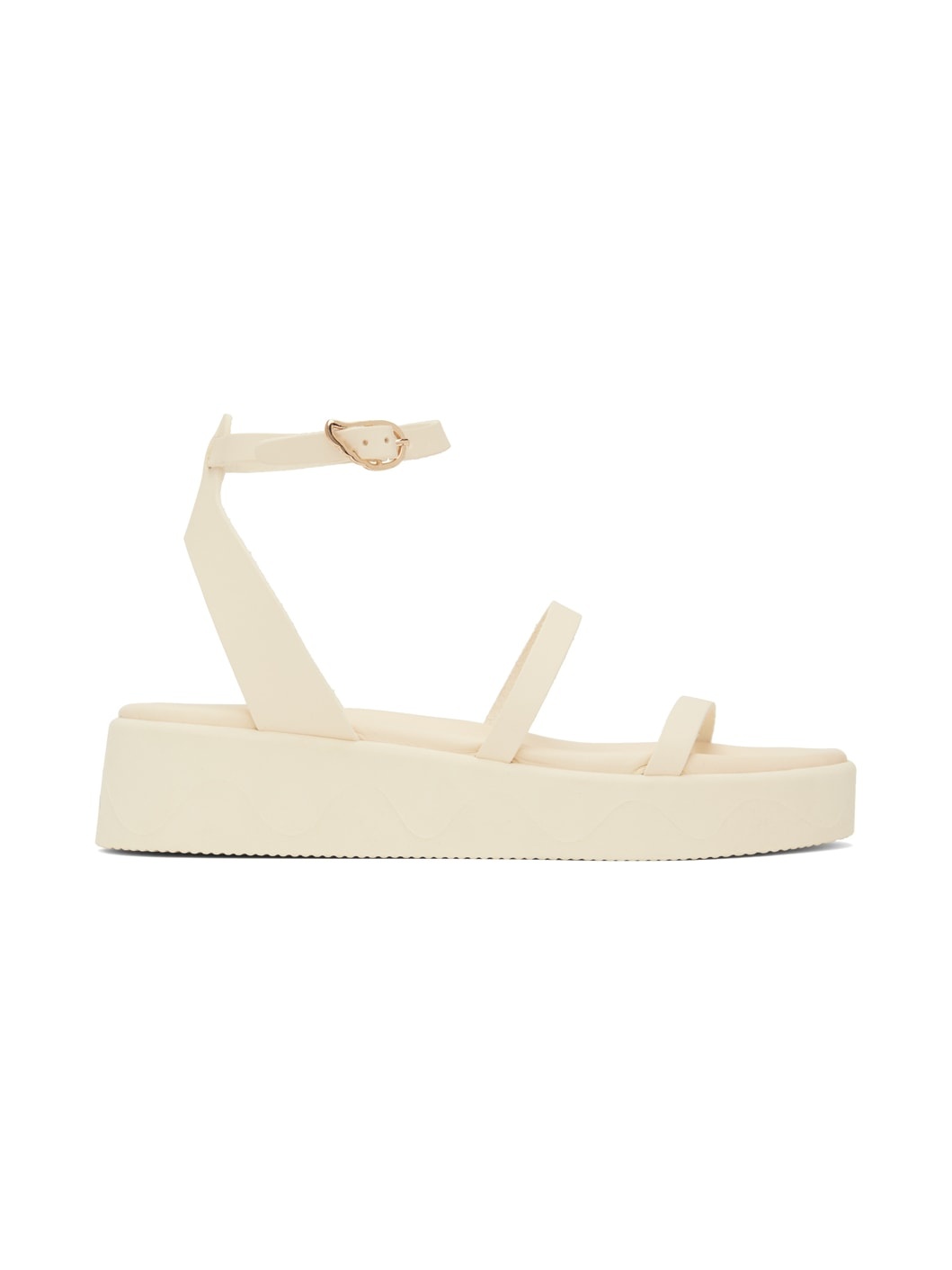 Handcrafted Vachetta leather flat sandals in off-white. · Open toe · Gold-tone logo hardware at pin-buckle ankle strap · Logo embossed at molded footbed · Foam rubber platform midsole · Treaded rubber sole · Platform: H1.5" Supplier color: Off white Upper: leather. Sole: rubber. Made in Greece 241674F124084