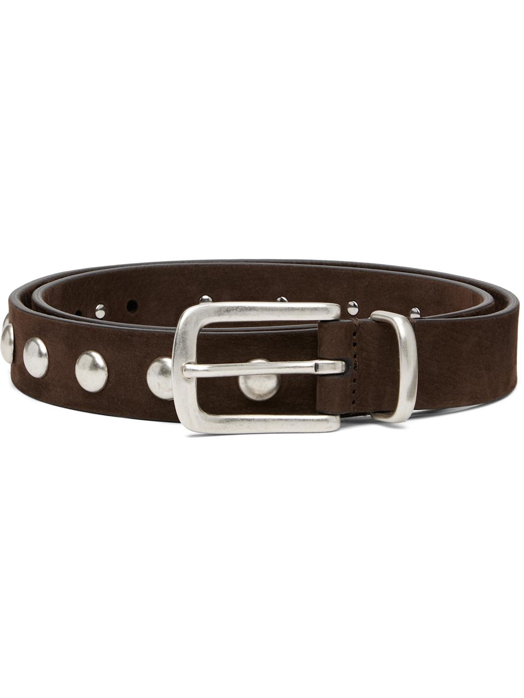 Brown Slim English Studded Nubuck Belt