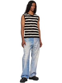 Open-knit acrylic- and cotton-blend tank top. Stripes and distressing throughout. · Rib-knit crewneck and armscyes · Pinched side seams · Webbing strap with rivets at back collar Supplier color: Black/Ecru 35% acrylic, 34% cotton, 31% polyester. Made in South Korea 251375M214000