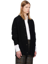 Oversized knit wool-blend cardigan. Distressing throughout. · Rib-knit crewneck, hem, and cuffs · Button closure · Rib-knit trim at placket and sleeves · Dropped shoulders · Logo-engraved horn hardware Supplier color: Black 60% wool, 35% nylon, 5% cashmere. Made in South Korea 242375M200002