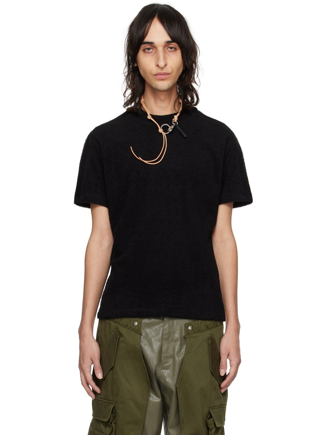 Cotton-blend terrycloth T-shirt. · Rib knit crewneck · Dropped shoulders · Logo embroidered at back collar Supplier color: Black Body: 78% cotton, 22% polyester. Trim: 75% cotton, 25% nylon. Made in South Korea 241375M213013