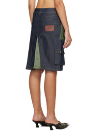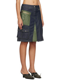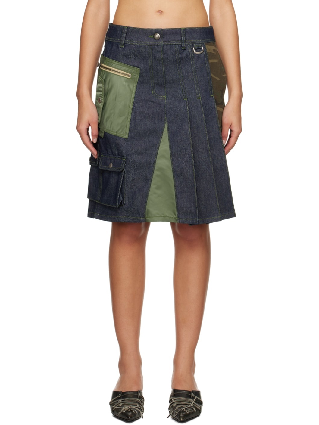 Non-stretch denim skirt. Nylon sateen and camouflage pattern-printed cotton ripstop throughout. · Paneled construction · Belt loops · Single-pocket styling · Zip-fly · D-ring at front · Zip and flap pocket · Knife pleats at front and back · Flap pocket at outseam · Logo patch at back Supplier color: Indigo Body 1: 100% cotton. Body 2: 100% nylon. Body 3: 100% cotton. Made in South Korea 241375F092001
