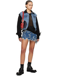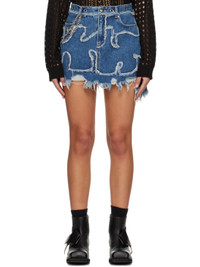 Non-stretch denim skirt. Graphic trim, frayed edges, and distressing throughout. · Grommets and belt loops at waistband · Two-pocket styling · Zip-fly · Logo hardware at front · Logo patch at back Supplier color: Denim blue 100% cotton. Made in South Korea 241375F090000