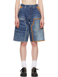 Blue Trompe L'oeil Double-Knee Denim Shorts