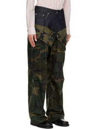 Cotton-blend ripstop and non-stretch denim cargo pants. · Camouflage pattern printed throughout · Layered foldover waistband · Belt loops · Five-pocket styling · Zip fly · Pleats at knees · Loops and cargo pocket at outseams · Contrast stitching in tan · Logo patch at back Supplier color: Navy/Green Body 1: 70% cotton, 30% nylon. Body 2: 100% cotton. Made in South Korea 252375F069004