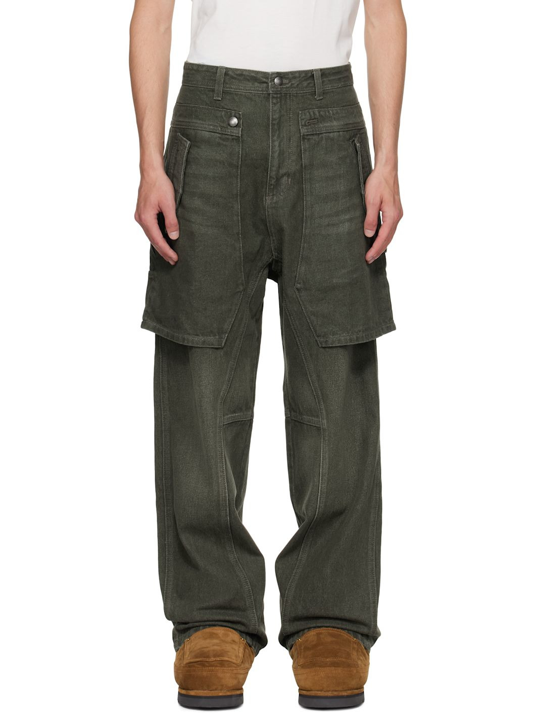 Khaki Raptor Layered Wide-Leg Jeans