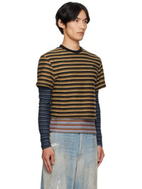 Rib-knit cotton-blend T-shirt. · Stripes throughout · Crewneck · Logo plaque at chest · Layered sleeves and hem Supplier color: Multi 60% polyester, 40% cotton. Made in South Korea 252375M213001