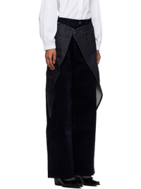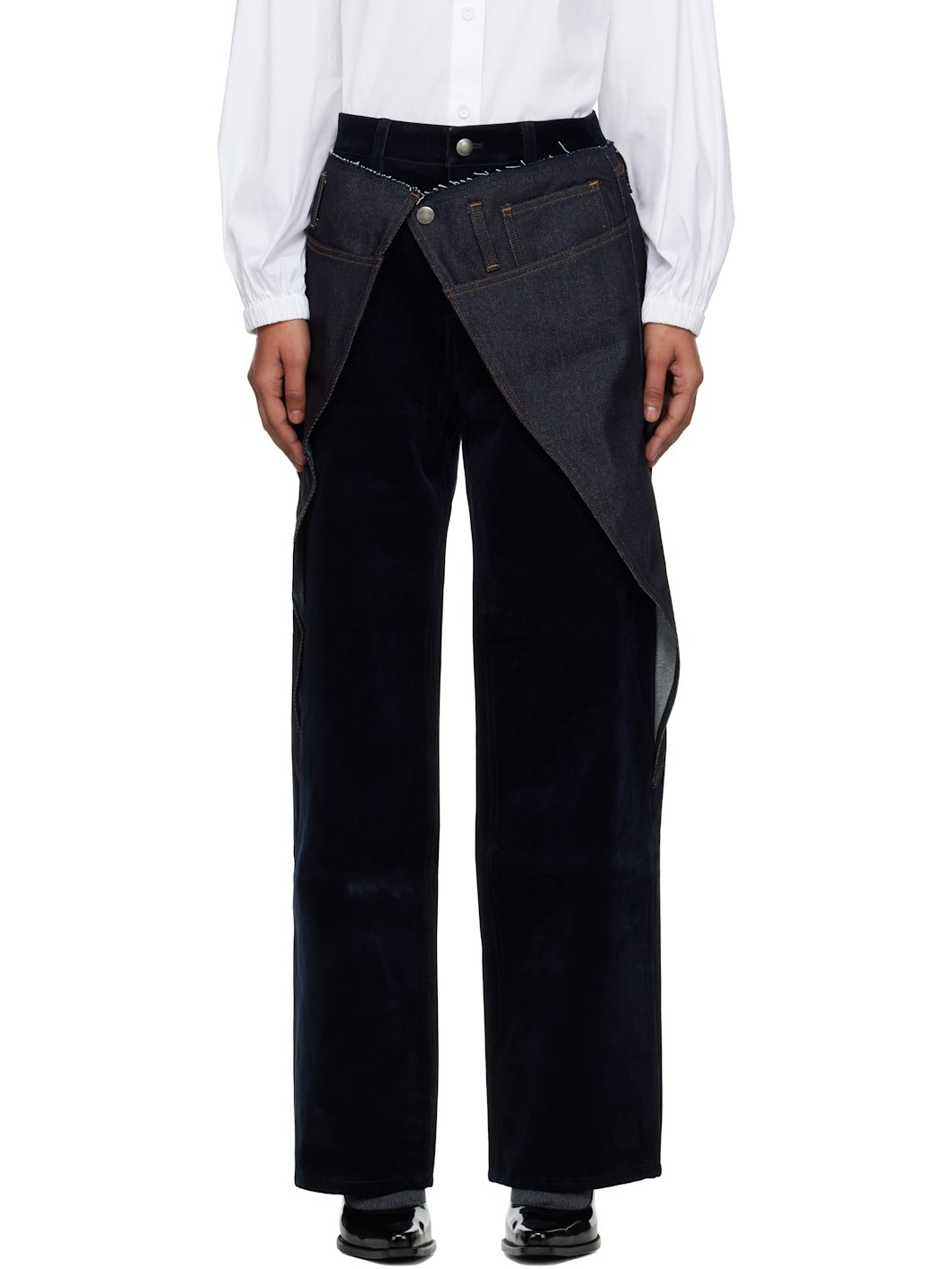Flocked non-stretch denim jeans. · Denim overlays with raw edges · Belt loops · Five-pocket styling · Zip fly · Cutout at outseams · Contrast stitching in tan Supplier color: Blue Body 1: 100% cotton. Body 2: 100% viscose. Trim: 100% cotton. Made in South Korea 252375F087001