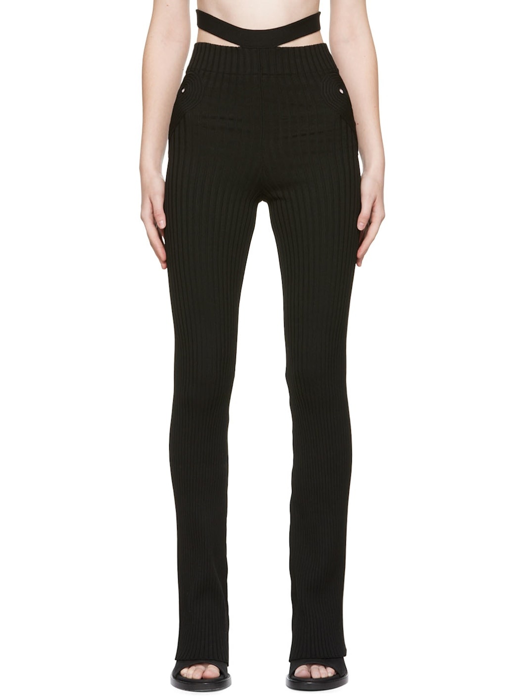 Rib knit stretch viscose and nylon-blend trousers. Cutouts at waistband. Supplier color: Black 90% viscose, 9% polyamide, 1% elastane. Made in Italy 221753F087007