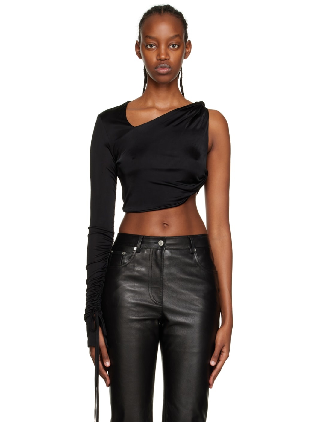 Viscose jersey blouse. Twisted detailing at front and side seam. · Asymmetric and single-shoulder construction · Cropped hem · Self-tie fastening at cuff Supplier color: Black 100% viscose. Made in Italy 222753F107000