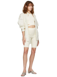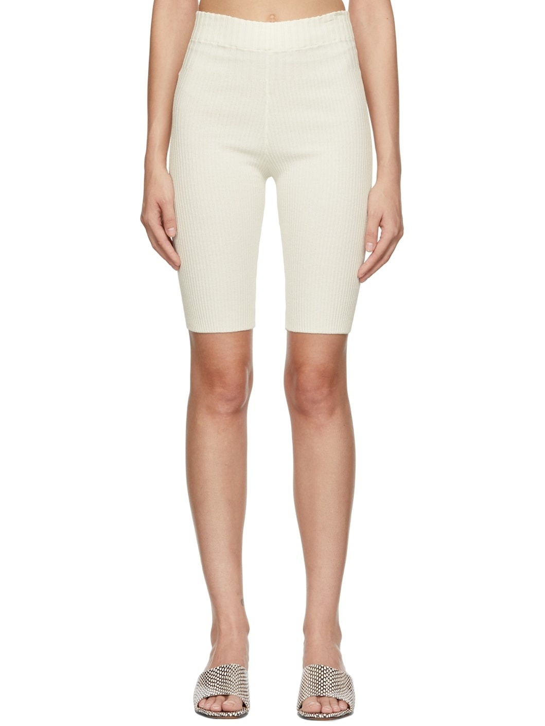 Rib knit stretch viscose-blend shorts in white. High-rise. Supplier color: Ivory 80% viscose, 10% polyester, 9% polyamide, 1% elastane. Made in Italy 221753F088006