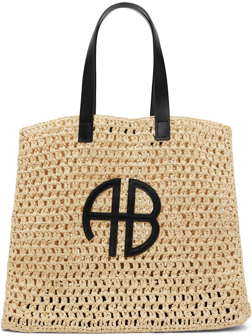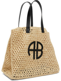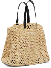 Handcrafted woven cellulose tote. · Buffed leather trim throughout · Fixed twin shoulder straps · Logo applique at face · Open throat · Unlined · H14" x W15.5" x D8.5" Supplier color: Natural Textile, leather. Made in Turkey 252092F049004