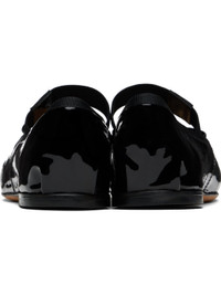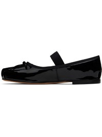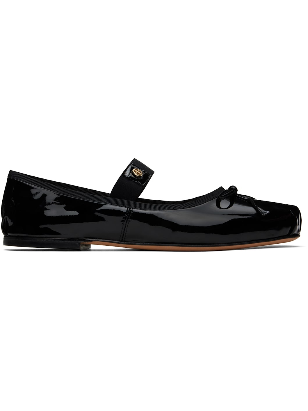Patent leather Mary Jane-style ballerina flats in black. · Bow accent at vamp · Grosgrain trim at collar · Logo hardware at elasticized strap · Logo stamp at padded leather footbed · Suede and grained leather lining · Stacked leather heel with rubber injection · Nubuck sole Supplier color: Black Upper: leather. Sole: leather, rubber. Made in Portugal 251092F118001
