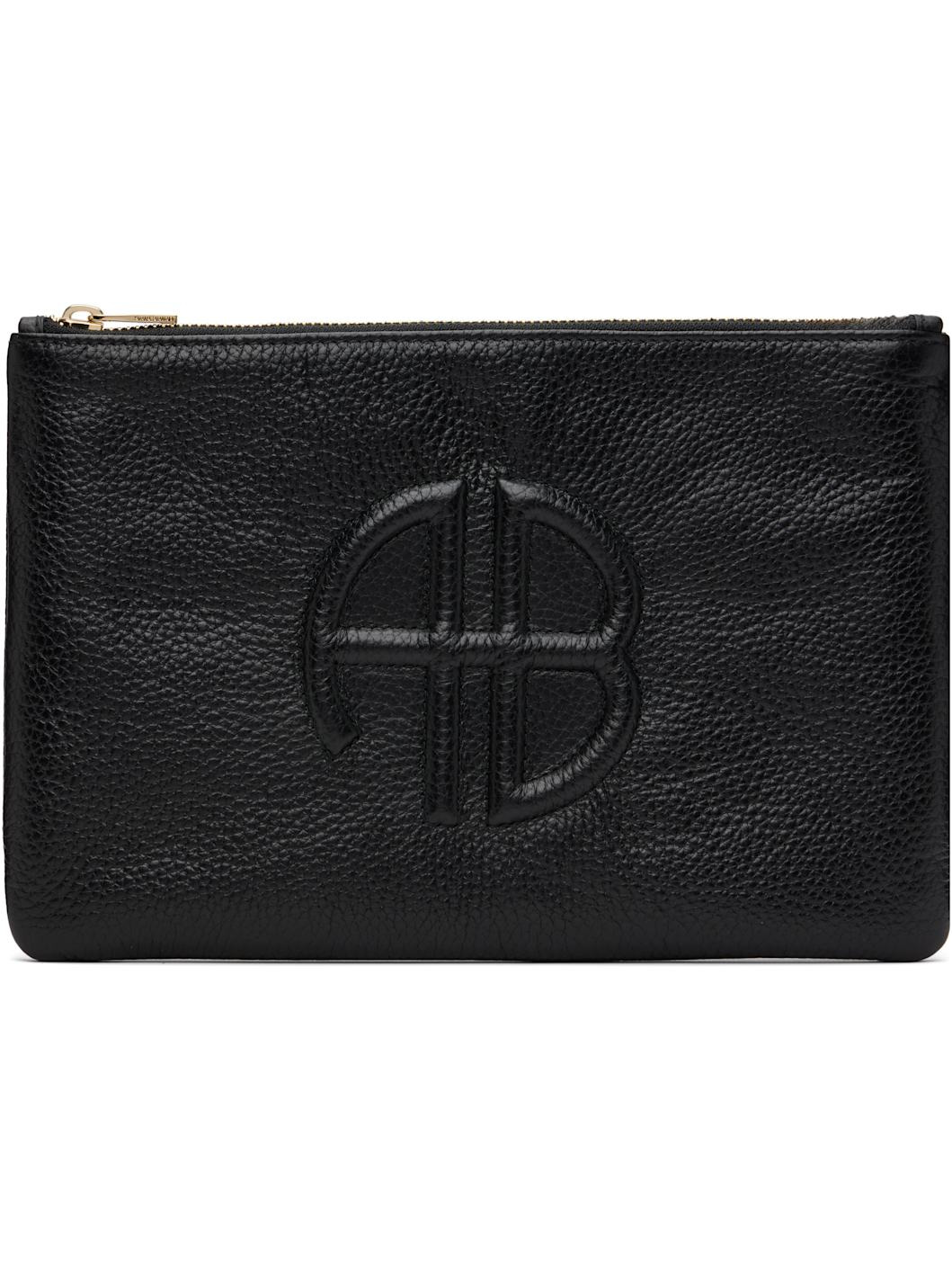 Pebble-grained leather pouch. · Logo embossed at face · Zip closure · Card slot at interior · Twill lining · Logo-engraved gold-tone hardware · H7" x W10.5" x D0.5" Supplier color: Black Leather. Made in Turkey 252092F045000