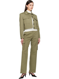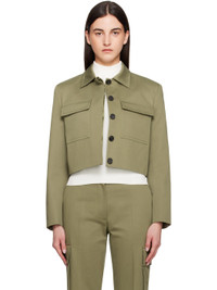 Boxy-fit cotton twill jacket. · Spread collar · Concealed button closure · Flap pockets · Cropped hem · Padded shoulders · Concealed surgeon's cuffs · Welt pockets at interior · Full logo-woven satin lining Supplier color: Army green 100% cotton. Made in Portugal 251092F063002