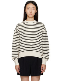 Relaxed-fit French terry sweatshirt. · Stripe pattern throughout · Rib-knit crewneck, hem, and cuffs · Logo embroidered at chest · Dropped shoulders · Logo bonded at back collar Supplier color: Black Stripe French Terry 83% cotton, 17% polyester. Made in Turkey 252092F098000