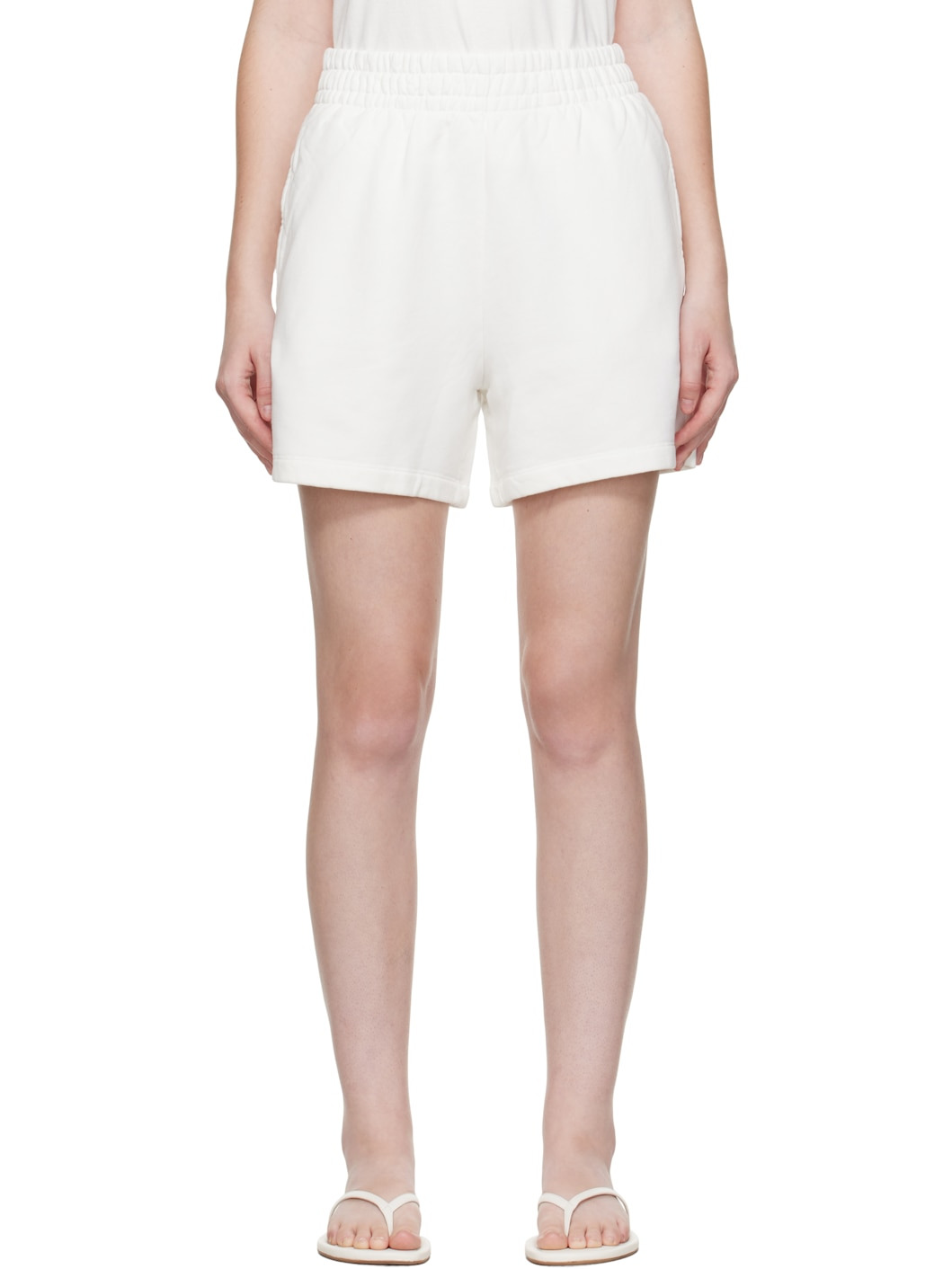 French terry shorts. · Concealed drawstring at elasticized waistband · Two-pocket styling · Logo embroidered at front hem Supplier color: Off-white 100% cotton. Made in Turkey 252092F088002