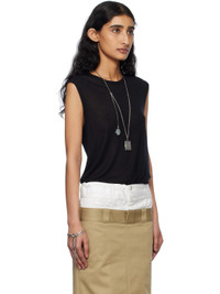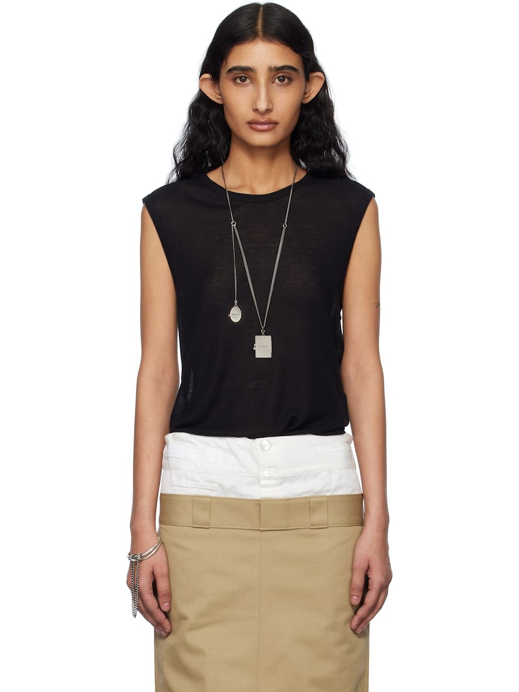 Semi-sheer viscose-blend ribbed jersey tank top. · Crewneck · Detachable strap with logo plaque at interior Supplier color: Black 70% viscose, 15% polyamide, 15% cotton. Made in Portugal 251378F111003