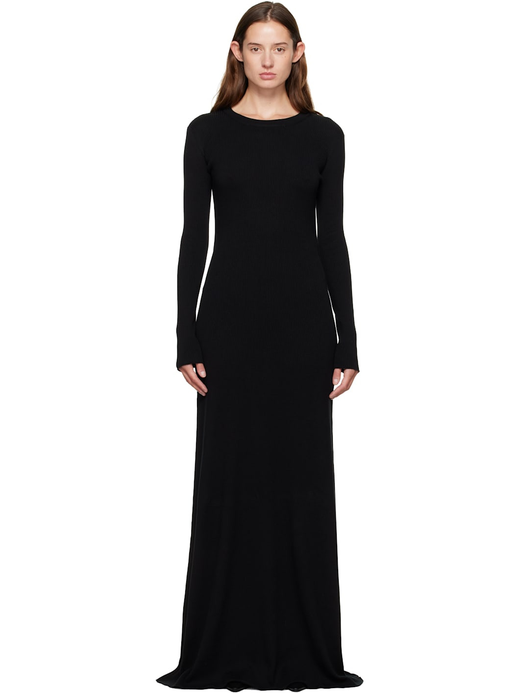 Rib-knit cotton- and cashmere-blend maxi dress. · Round neck · Open back Supplier color: Black 85% cotton, 15% cashmere. Made in Italy 252378F055004