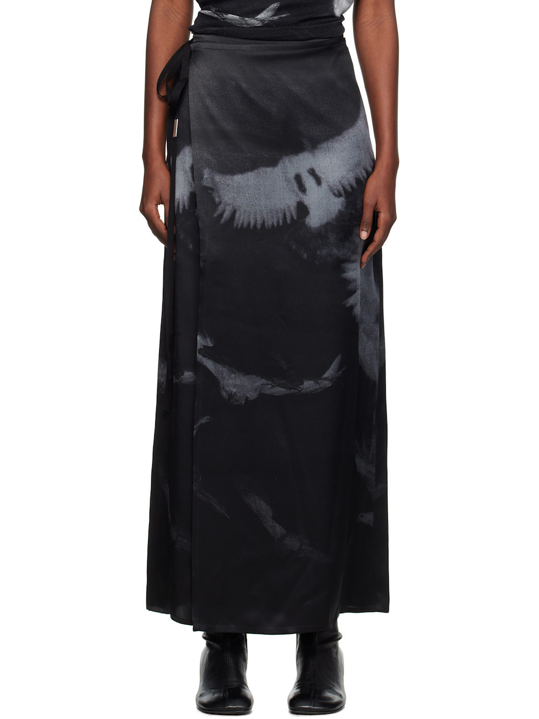 Black & Gray Oku Printed Wrap Maxi Skirt