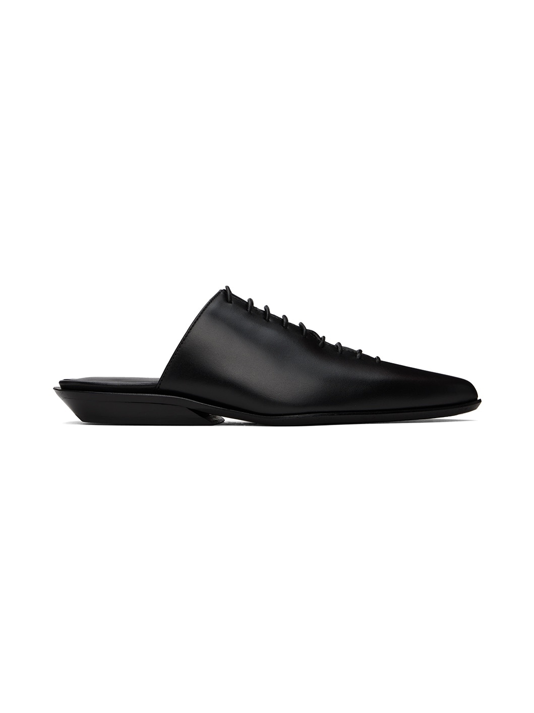 Buffed calfskin mules in black. · Lace-up closure · Logo printed at padded leather footbed · Grained leather lining · Stacked leather heel with rubber injection · Leather sole Supplier color: Black Upper: calfskin. Sole: leather, rubber. Made in Italy 241378F121001