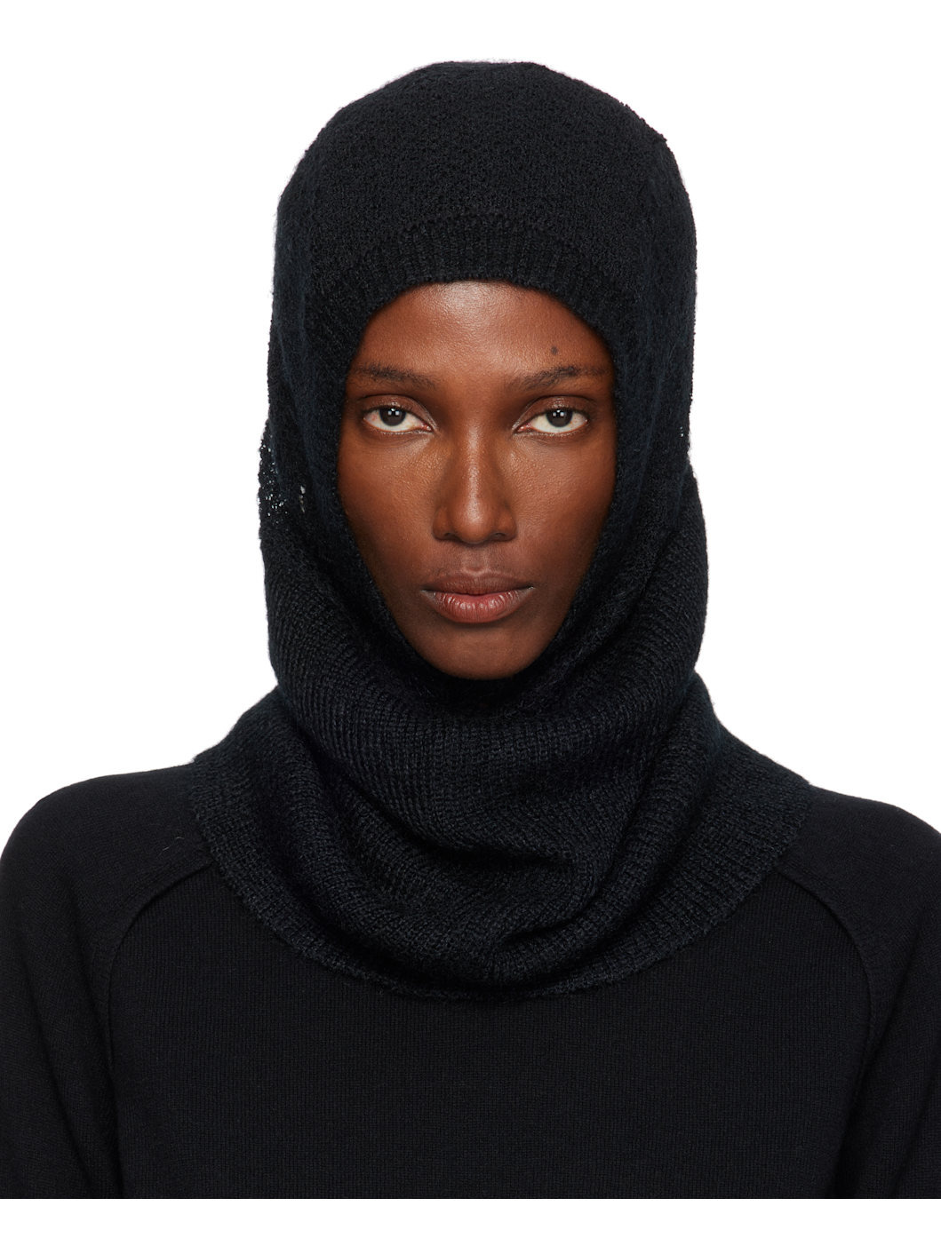 Knit mohair- and silk-blend balaclava. Laddering and rib-knit trim throughout. Supplier color: Black Body: 70% mohair, 30% silk. Trim: 85% wool, 15% polyamide. Made in Italy 252378F014000