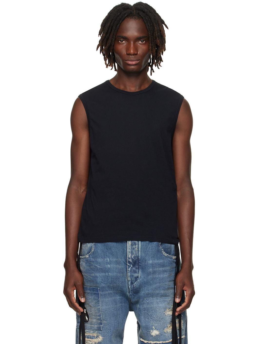 Cotton jersey tank top. · Rib-knit scoop neck and armscyes · Adjustable grosgrain straps at hem · Graphic printed at back Supplier color: Black 100% cotton. Made in Portugal 251378M214001